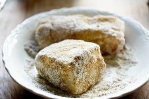 In a hot skillet, with a mix of canola oil and olive oil, brown the coated fish on all sides. If they are a particularly thick cut like these, place in a warm oven for a few minutes until your desired doneness.