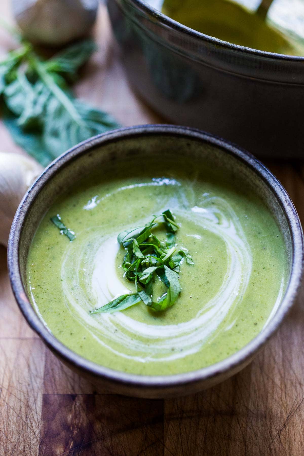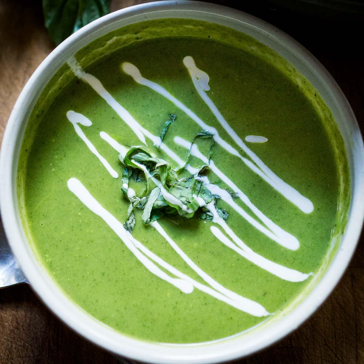 To Serve: Garnish with basil ribbons. For extra richness, add a swirl of plain yogurt or sour cream, vegan yogurt, parmesan, or croutons.